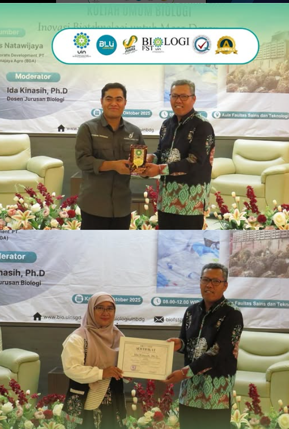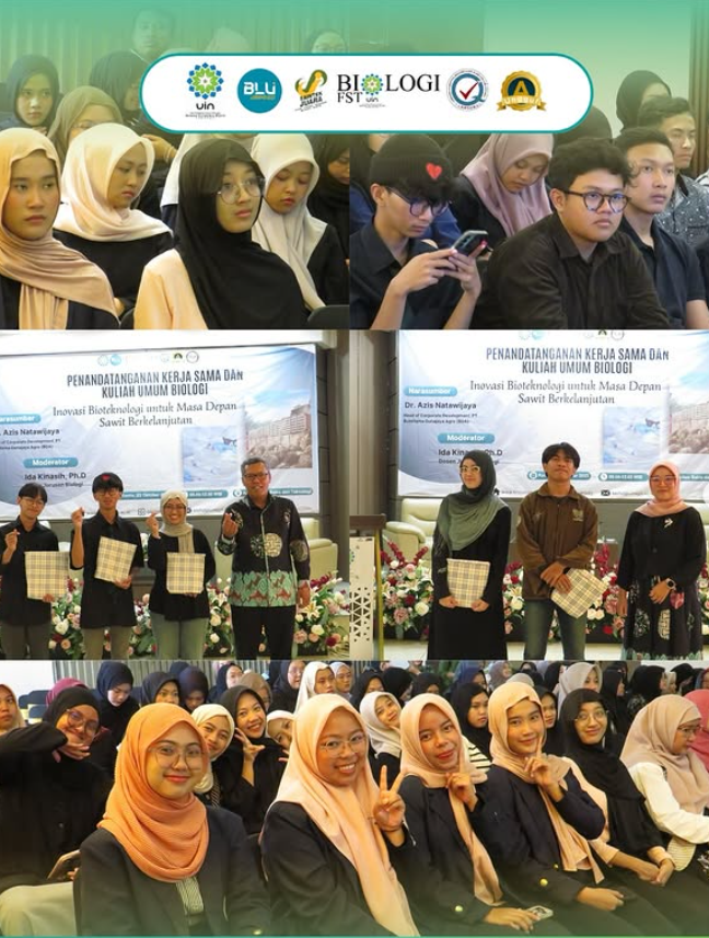 Bandung, 2 Oktober 2025 — Jurusan Biologi Fakultas Sains dan Teknologi Universitas Islam Negeri Sunan Gunung Djati Bandung kembali menyelenggarakan kegiatan Kuliah Umum yang dikemas bersamadengan Penandatanganan Kerja Sama dengan PT. Bumitama Gunajaya Agro (BGA) yang merupakan perusahaan yang bergerak di bidang budidaya dan pengolahan kelapa sawit [2/10/2025]. Acara ini akan dilaksanakan secara offline di Aula Fakultas Sains dan Teknologi (FST) UIN Sunan Gunung Djati Bandung dan dihadiri oleh dosen dan tendik serta Mahasiswa Jurusan Biologi.